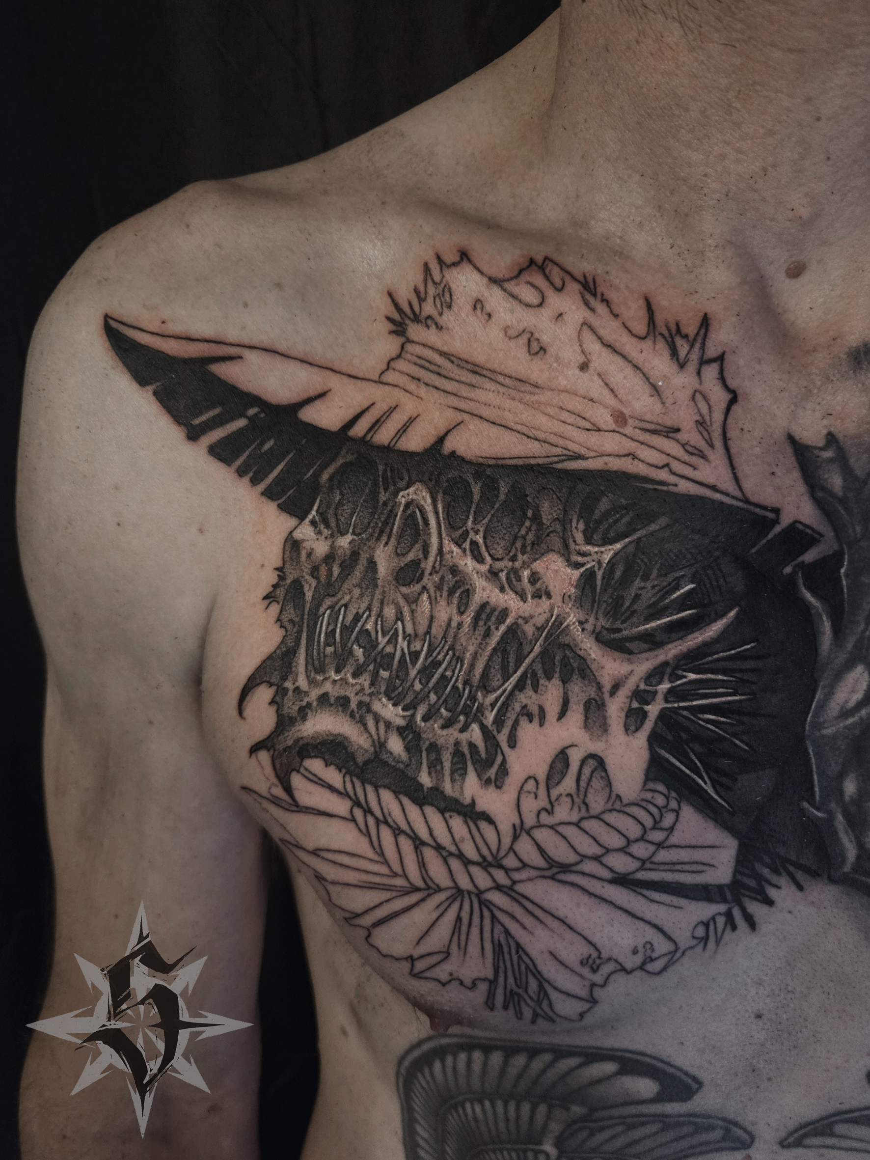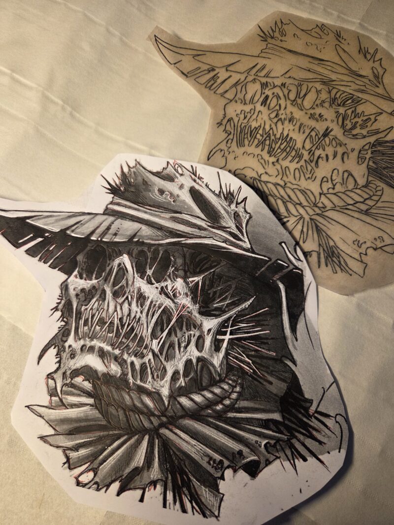 Nouveau projet pour Julien pour compléter son chest avant d’attaquer le haut de son bras droit. Avec un thème sur lequel j’avais envie de bosser depuis un moment : l’épouvantail. Quatre heures de pique pour cette première séance.